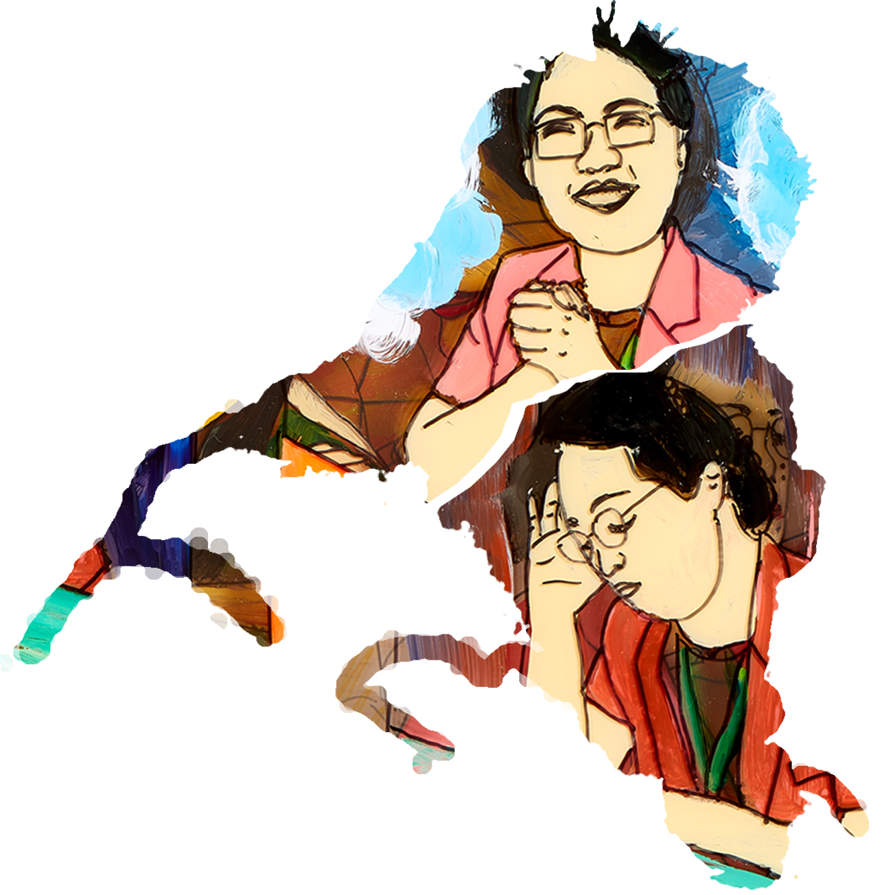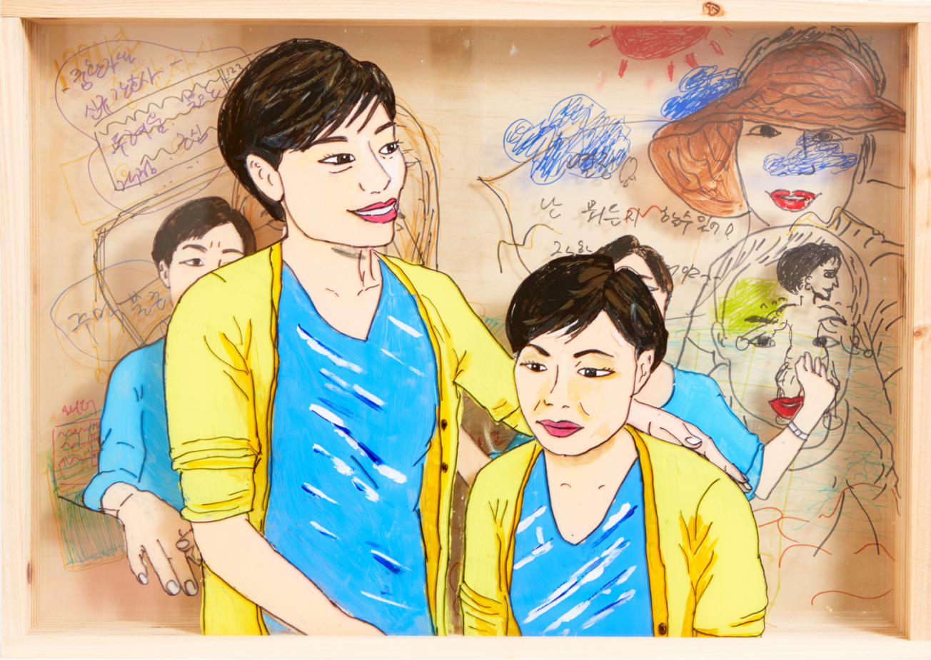 참여자들은 에곤 실레가 그렸던 [이중자화상]을 그리며 두 개의 모순된 정체성을 표현합니다. ‘생활의 안정을 위해 선택한 간호사라는 직업인의 안정적인 나’와 ‘항상 새롭고 가슴을 콩닥거리는 것들을 쫓는 자유로운 나’, 자유와 안정은 모두 바람직한 가치입니다. 충동에 자신을 맡기면 떠돌이처럼 정착하지 못한 채 불안정한 삶을 살아야 하고, 반대로 정해진 의무 속에서만 살아간다면 단순한 도구를 벗어나지 못한 삶을 살아야 합니다. 들숨만으로 혹은 날숨만으로 숨을 쉴 수 없듯이 자유와 안정은 양자택일의 문제가 아니라 모두 소중히 지켜야 할 자신의 진정한 모습입니다. [이중자화상] 속 두 개의 자아는 서로에게 기대어 의지합니다. 그동안 충돌하고 다투던 쌍둥이는 [이중자화상]을 통해 서로를 이해하고 화해하며, 서로를 돕는 조력자가 됩니다.