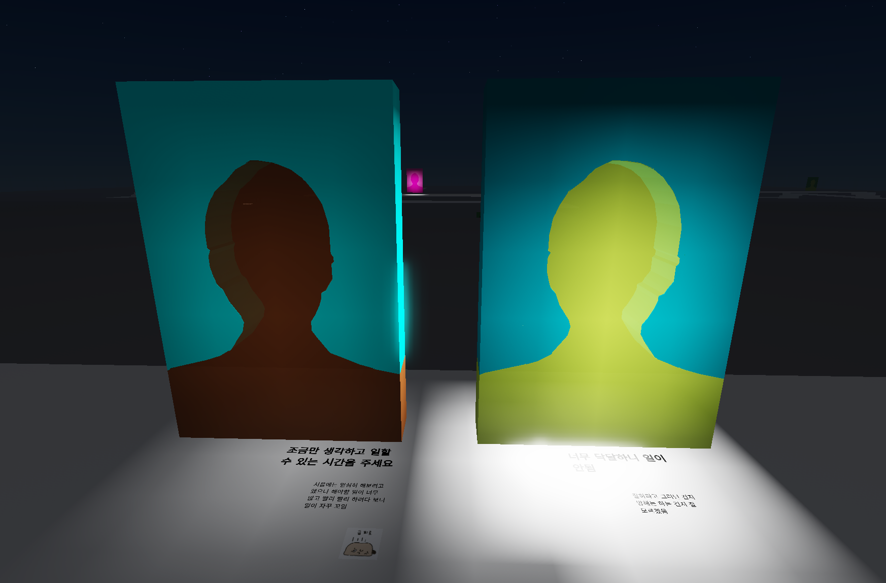 [감정의 초상]은 신입간호사를 대상으로 감정노동으로 인한 소진을 완화하고 정서적 안정을 찾을 수 있도록 돕는 미디어 기반 미술치료 프로그램입니다. [감정의 초상]은 전통적인 회화와 디지털 미디어를 결합하고, 전통적 치료실과 디지털 시공간을 접목했습니다. 특히 신입간호사가 익숙한 디지털 공간을 활용해 언제 어디서든 자신의 감정을 즉각적으로 표현하고 소통할 수 있는 치료 환경을 제공합니다. 참여자들은 매순간의 불편한 감정들을 오픈채팅방에 기록하고 이 기록은 자동적으로 초상화의 이미지로 전환됩니다. 이렇게 시각화된 감정의 초상들은 메타버스 공간에 축적되고, 참여자들은 함께 접속해 서로의 작품을 보며 그 때의 감정에 대한 이야기를 나눕니다.